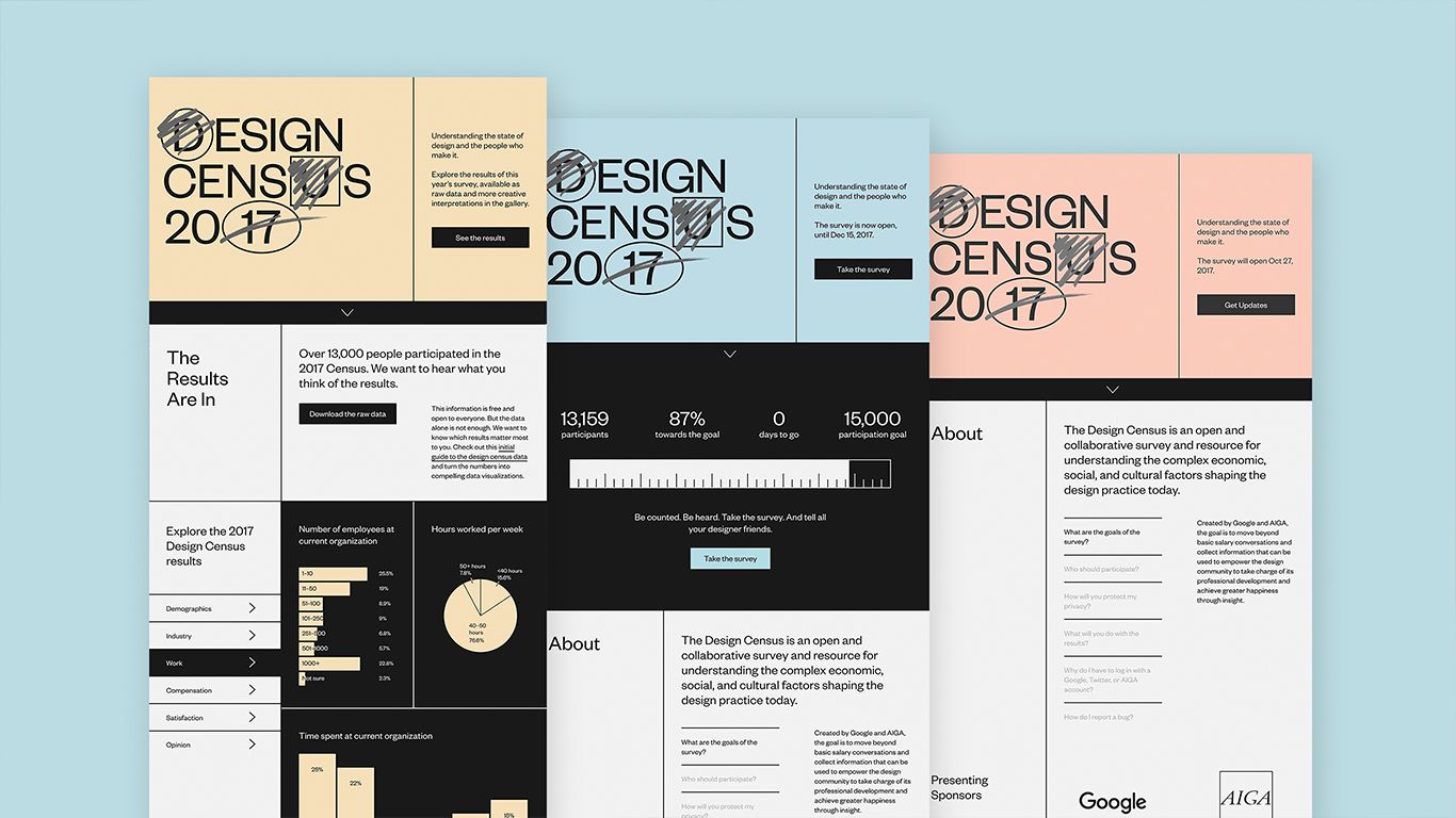While working at Sosolimited, we partnered with AIGA and Google Design to launch the second annual Design Census, an initiative that helps the design community grasp the complex economic, social, and cultural factors shaping the design practice today.