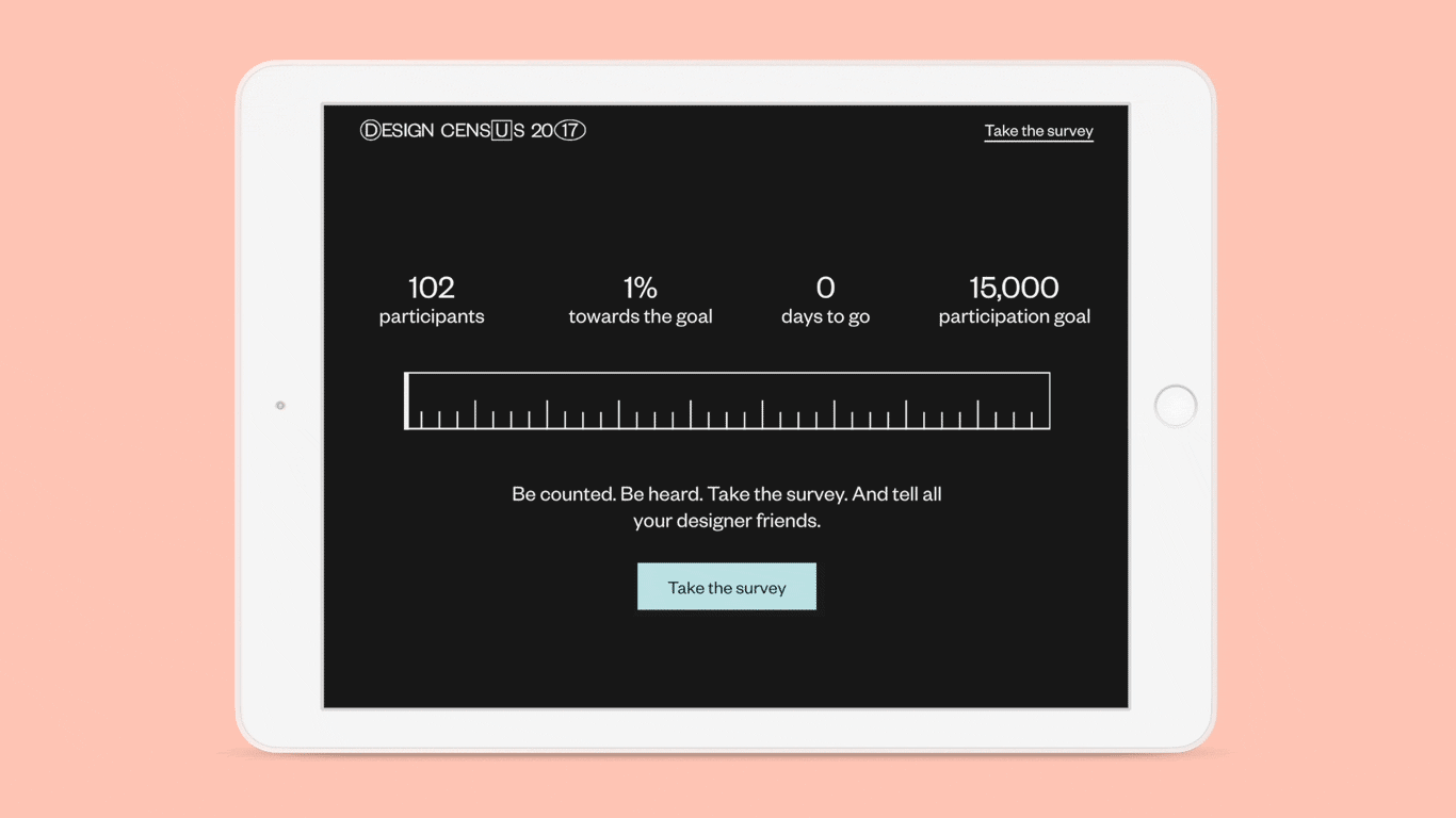 Driven by the goal of increasing survey participation and generating more value for the design community, my team started with the 2016 Design Census and identified ways in which the experience could be improved.