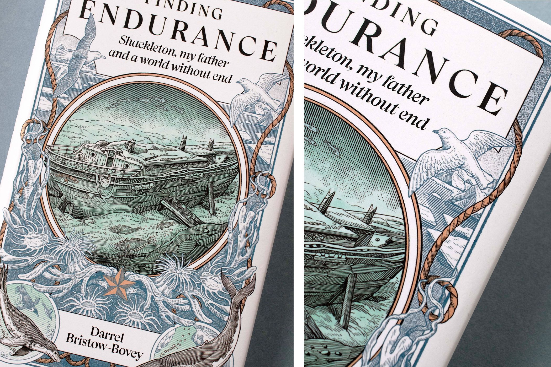 Letztes Jahr wurde ich von Icon Books gebeten, das Cover für Darrel Bristow-Boveys Buch „Finding Endurance“ zu illustrieren. Ich lasse mich in meiner Arbeit stark von der Geschichte inspirieren. Daher war die Möglichkeit, die Themen von Ernest Shackletons Schiff „Endurance“ aufzugreifen und die Natur der Antarktis in ein Cover zu integrieren, für mich ein wahrgewordener Traum.