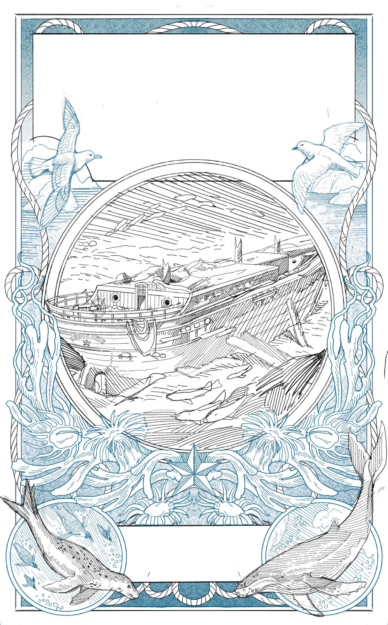 Last year I was approached by Icon Books to illustrate the cover for Darrel Bristow-Bovey's book 'Finding Endurance'. I draw a lot of inspiration from history in my work, so to have the chance to work with the themes of Ernest Shackleton's ship, the Endurance, and incorporate the nature of the Antarctic into one cover was a dream come true for me.