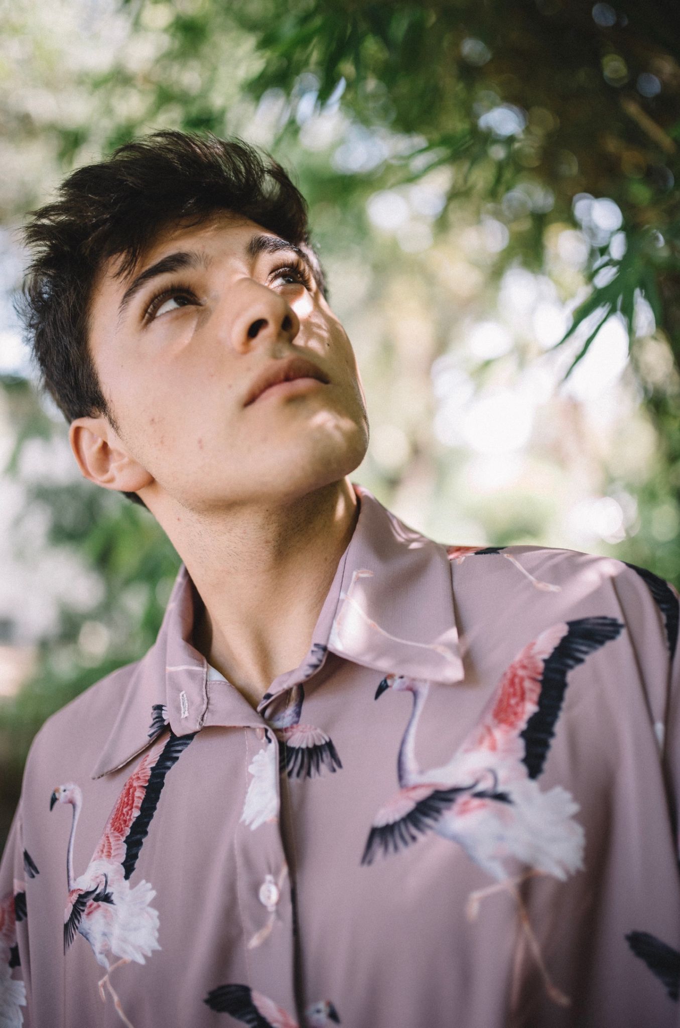 Para esta colección he utilizado una ilustración del flamenco andino en acuarela, la obra de la Garza cuca en paisaje hecha con técnica mixta, una ilustración botánica de begonias en tiralíneas, y una ilustración botánica de passiflora, técnica mixta.