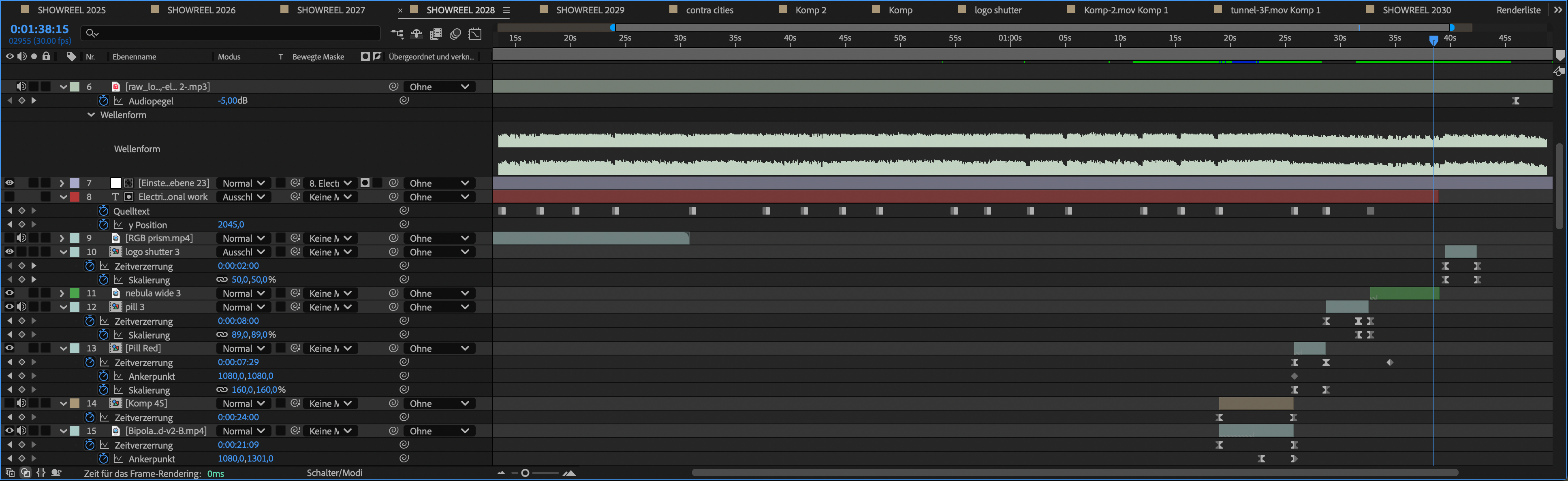 1. First I rummaged through my archive and collected all the clips in After Effects that I wanted to show.