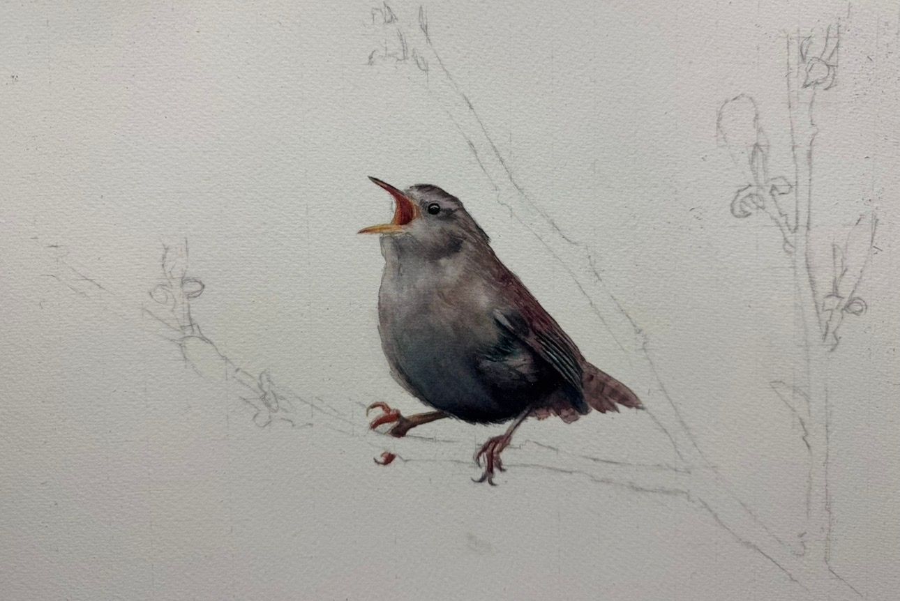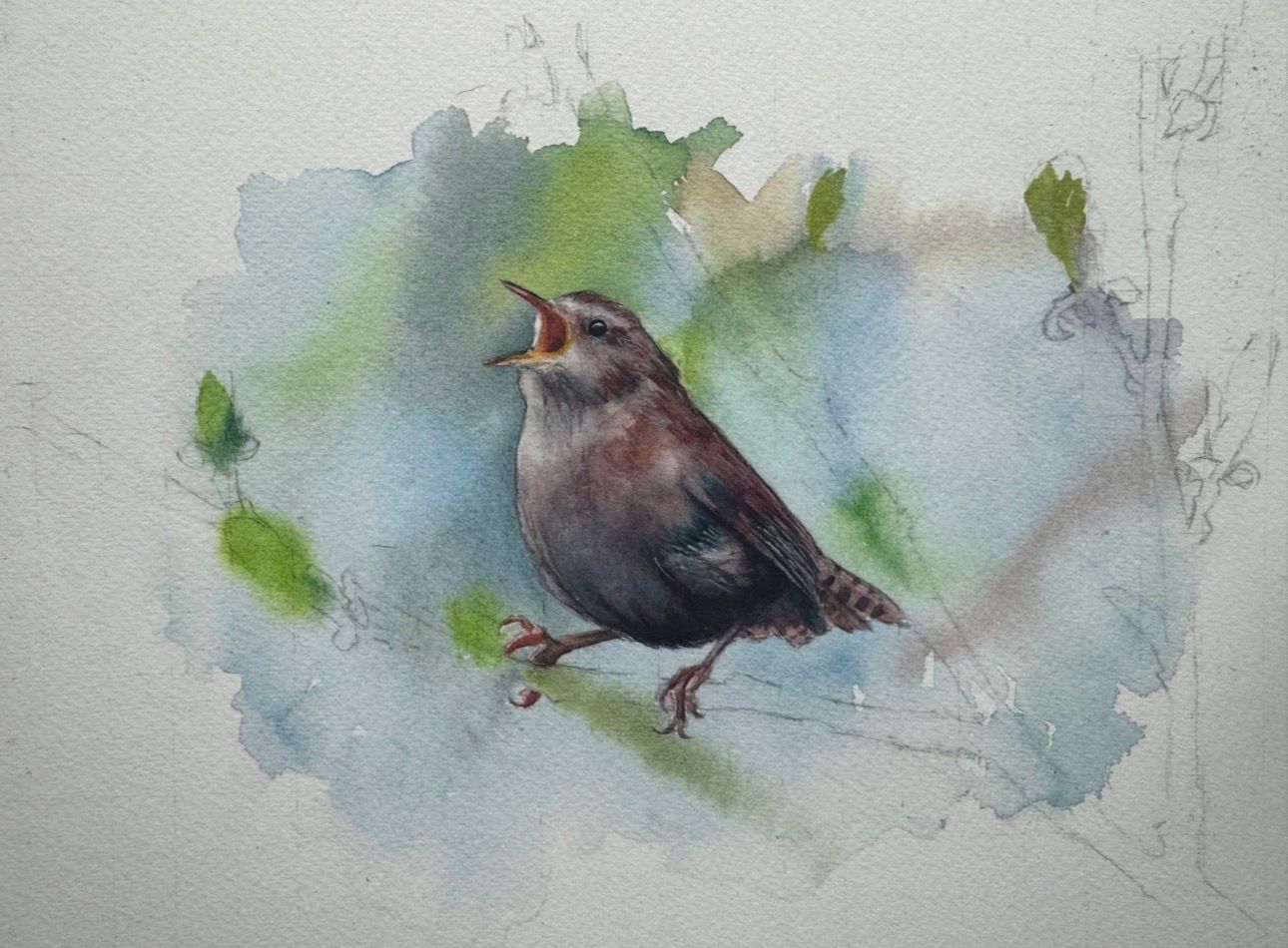 I created a watercolour piece of a Jenny wren for a new course. I wanted to incorporate a background