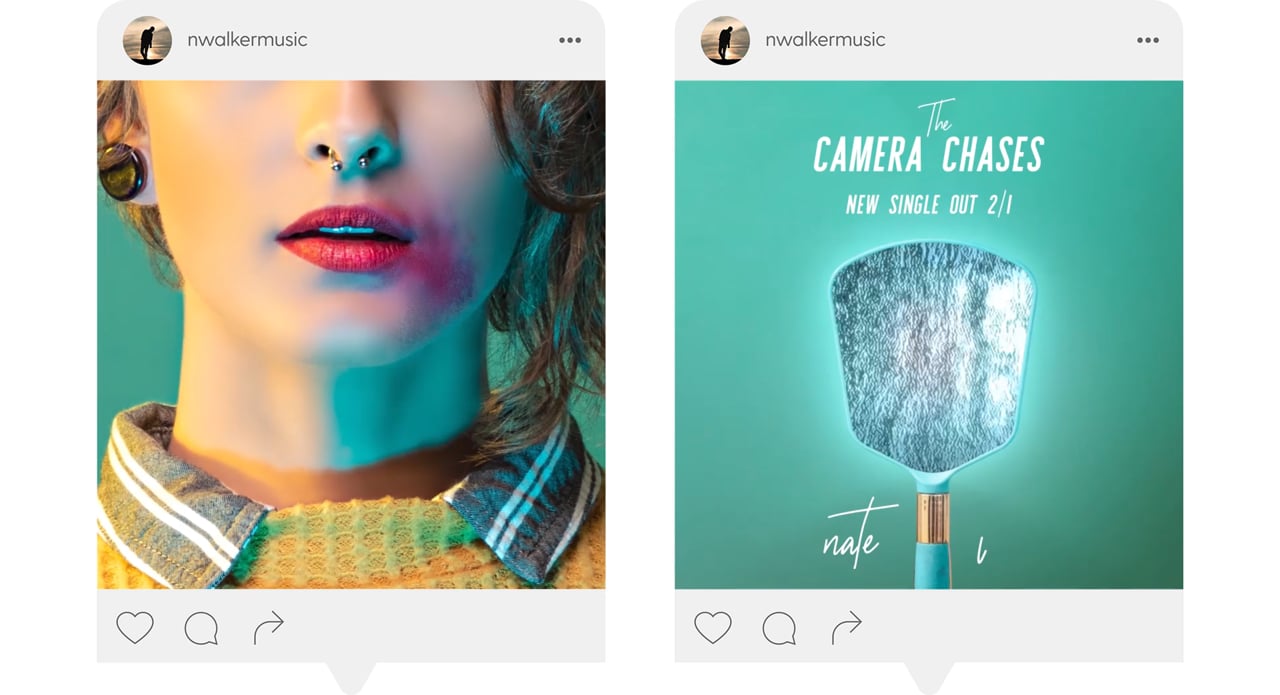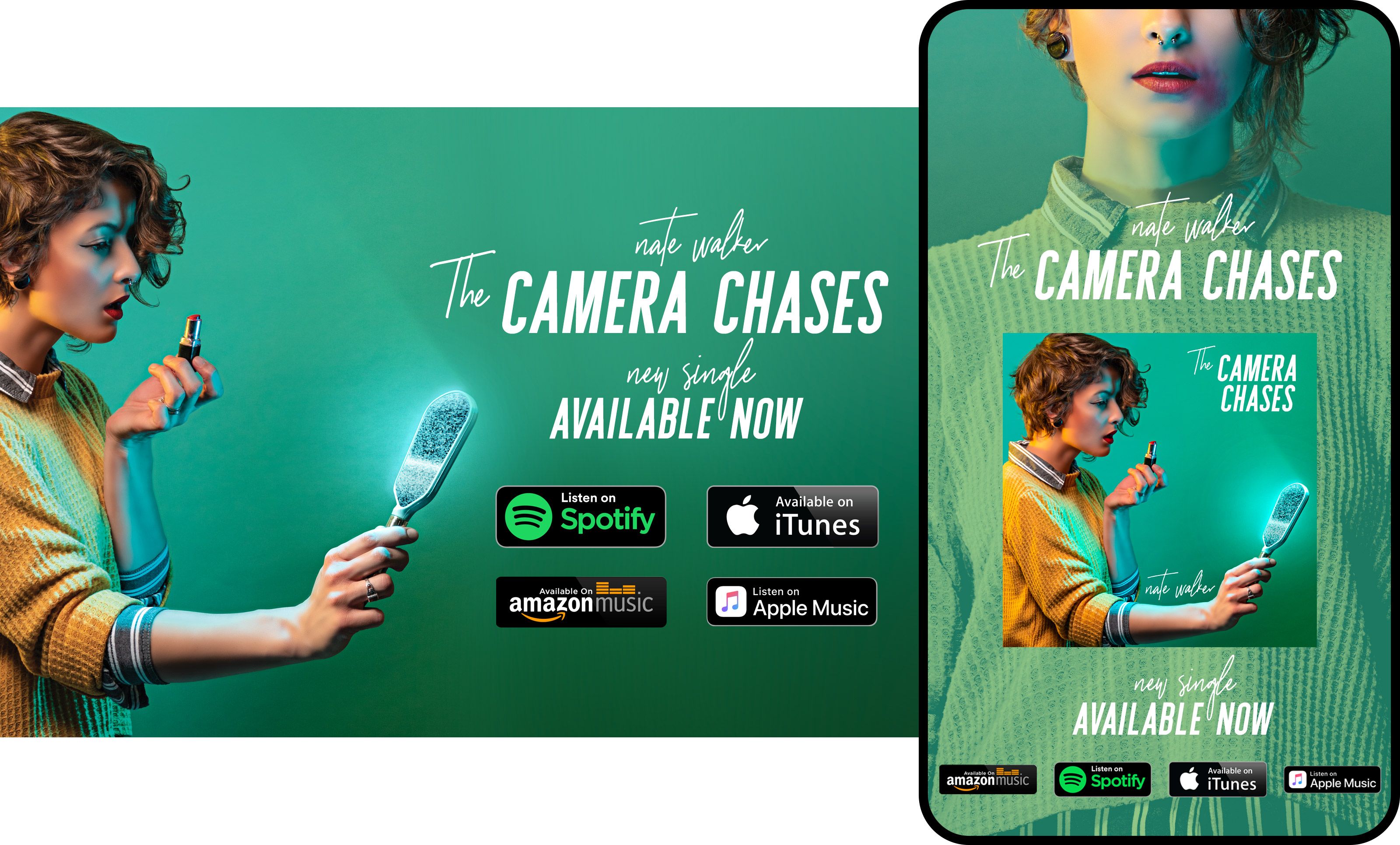 Nate Walker is a singer/songwriter based in Frenchtown, New Jersey. Nate’s music pulls from the hard angles of new wave and punk, the soft pad of classic pop orchestration, the thick rhythms of rock and r&b, and the cold contours of the digital. I photographed, designed, and animated promotional collateral for his 2019 single The Camera Chases for both print and digital release.