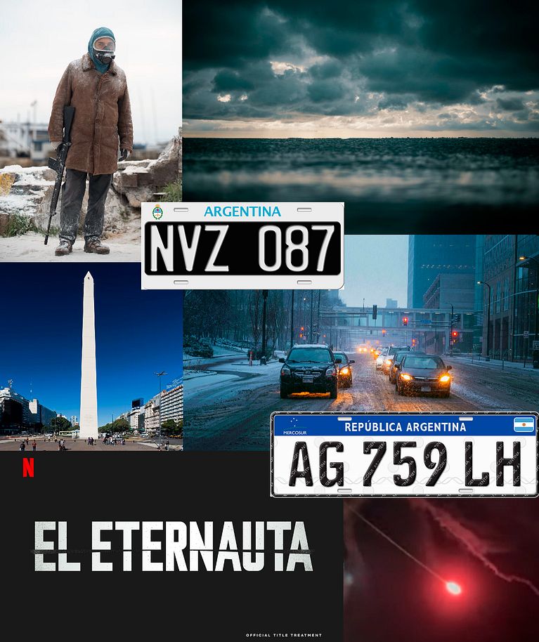 As you'll see in the mood board, my main inspiration comes from certain scenes in the series, where Juan Salvo begins his journey to understand what's happening, to seek help and find survivors. In these scenes, you can feel the uncertainty, the abandonment, the despair, but also the courage to take charge and dictate his own destiny. Generally, there are shots of the abandoned city in the background, something that also influenced the poster.
