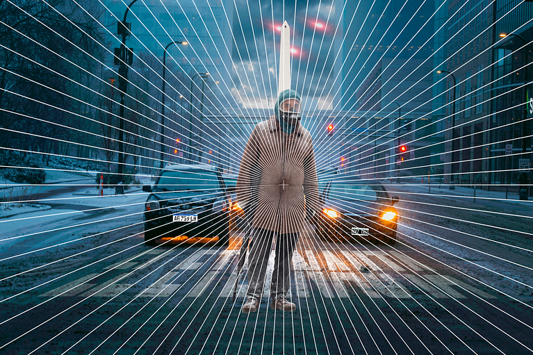 For the composition, I used the character I cut out from a behind-the-scenes photograph, using the Select Subject tool, and then refined the clipping mask. I repeated the procedure with the obelisk.