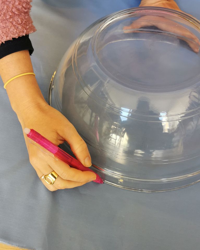 Con un bowl, marqué en la tela donde iría mi mundo.