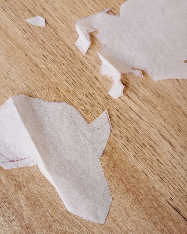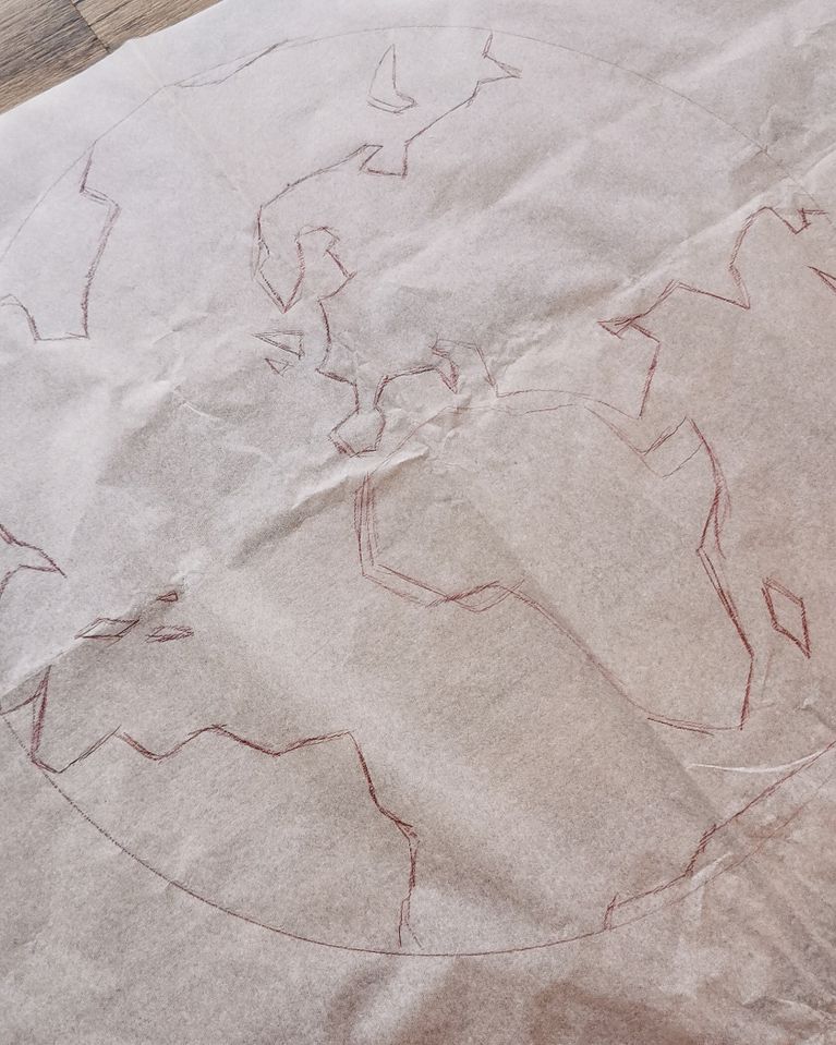 A continuación, en papel de seda, marqué la misma forma y dibujé los diferentes continentes.