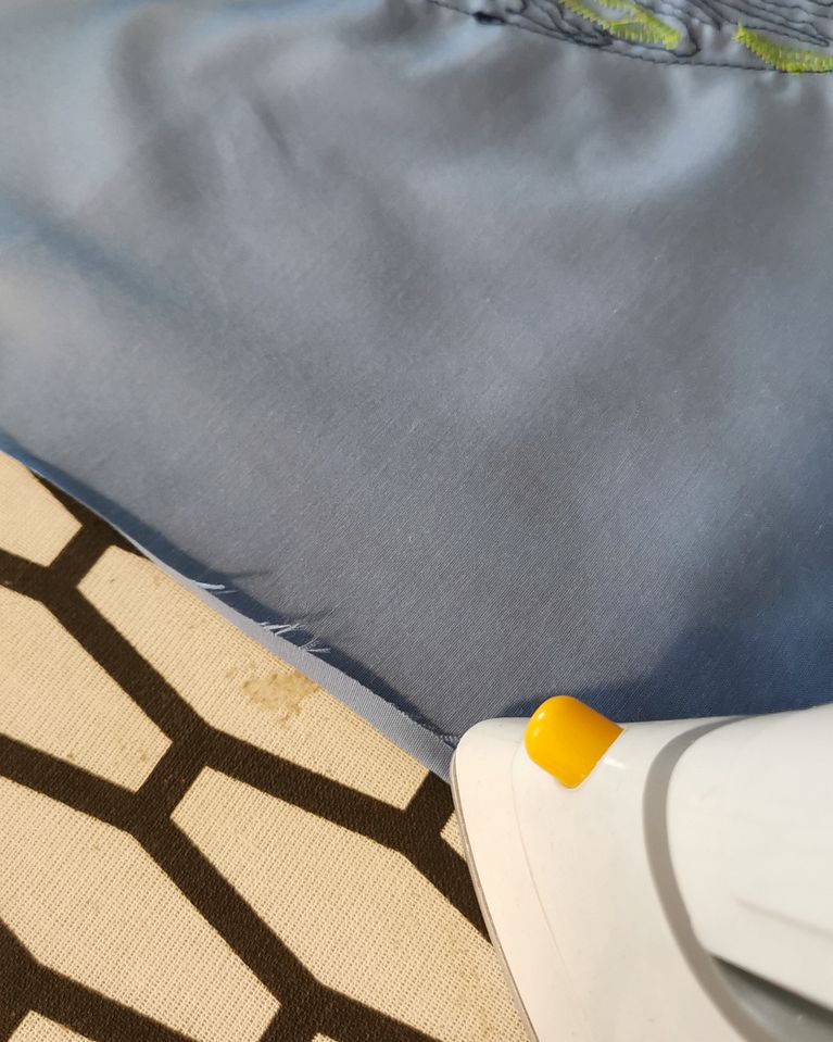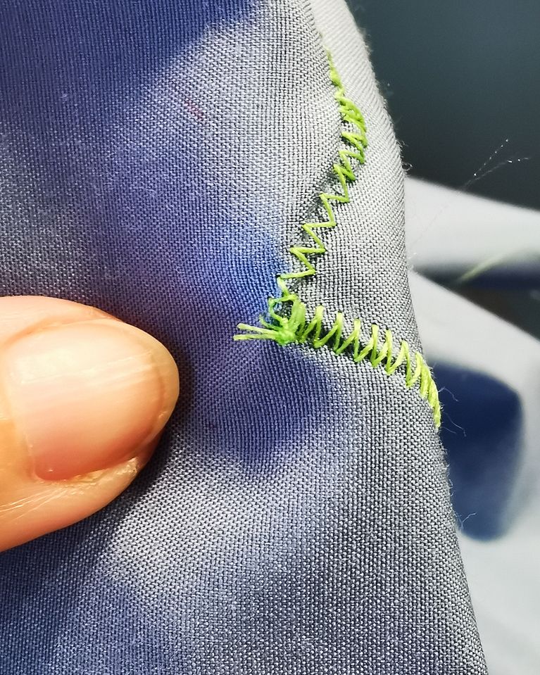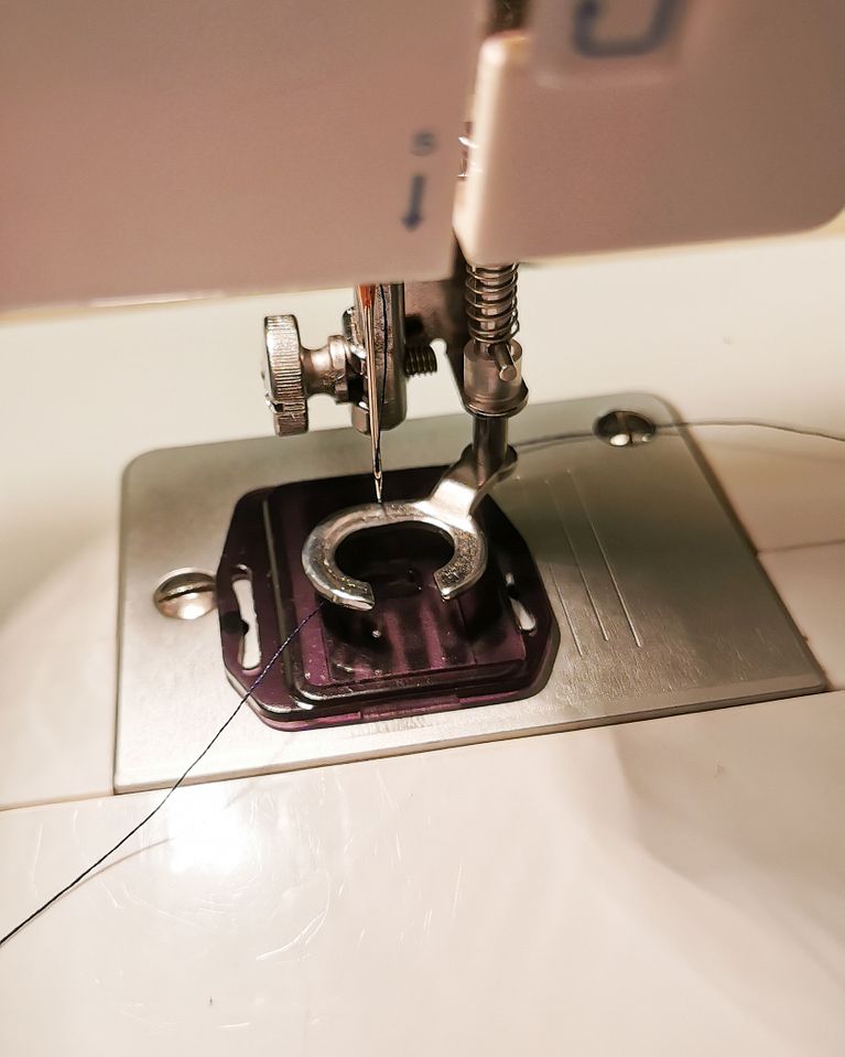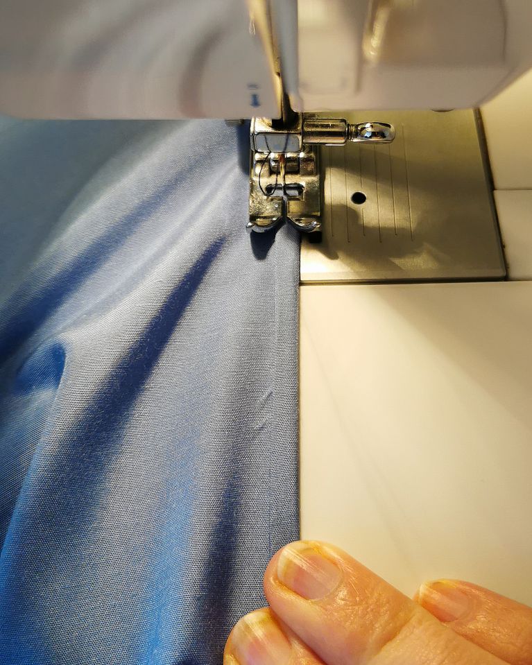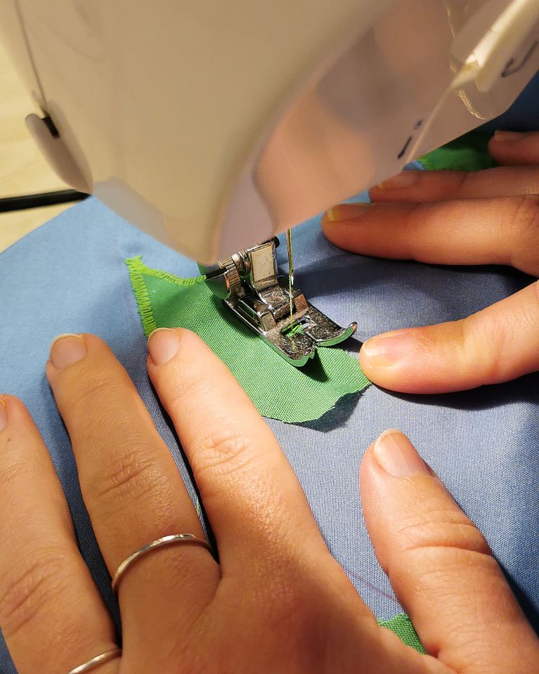 Asegúrate de pillar bien la tela y que todos los bordes queden debajo de la puntada.