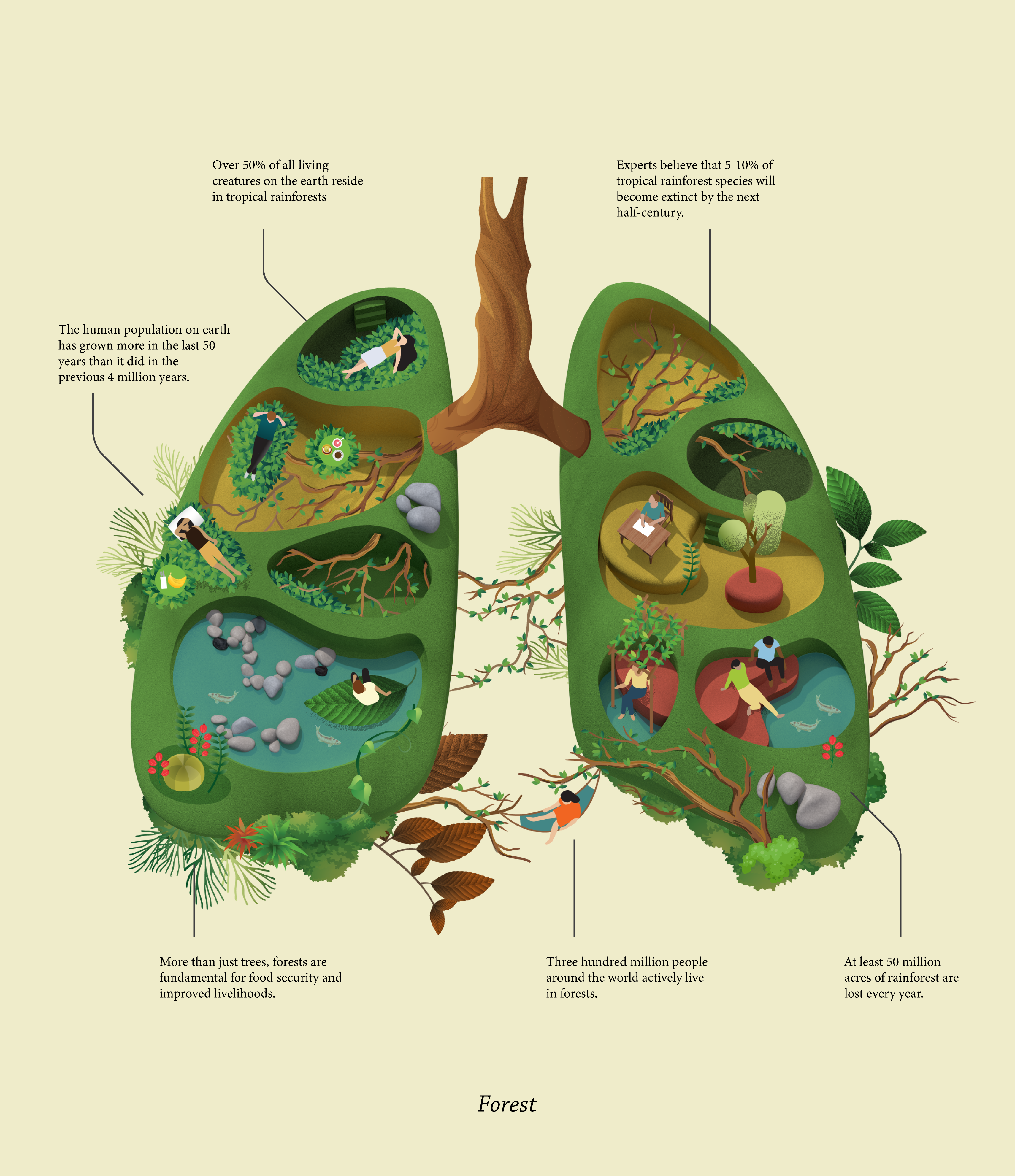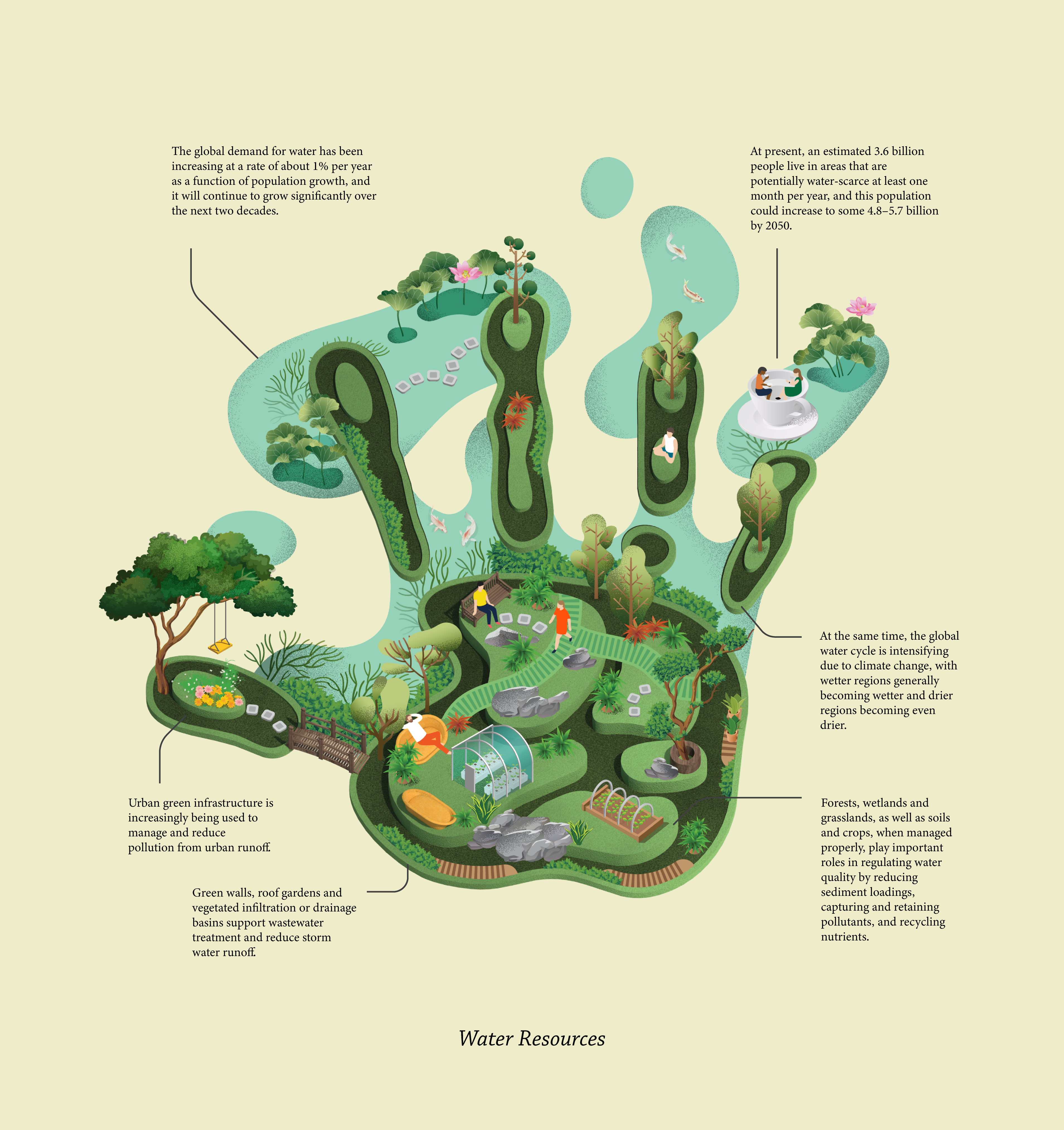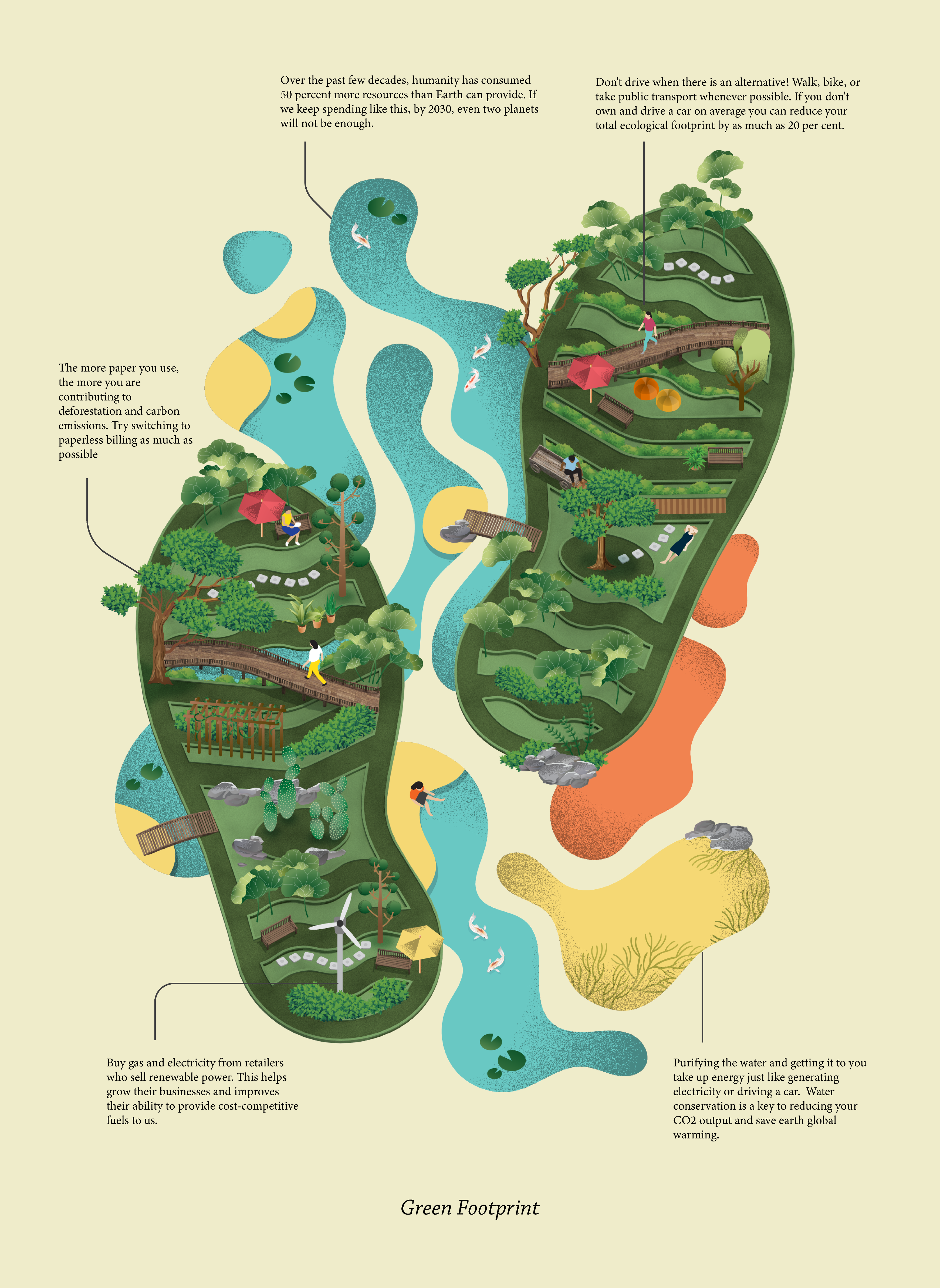 Nature and Us, is a personal study and graphical project that I have been working on, started in the background of 2018 summer, the hottest joint summer in UK's record. We’re facing the biggest environmental challenge our generation has ever seen. Climate change is impacting on many of the things we love and cherish. It’s changing the seasons, upsetting the crops that feed us, and affecting precious species. The following are several topics on Water resources, Forest, Agriculture, Ecosystem, Biodiversity, Green Footprint, how human activities and the nature impact each other.