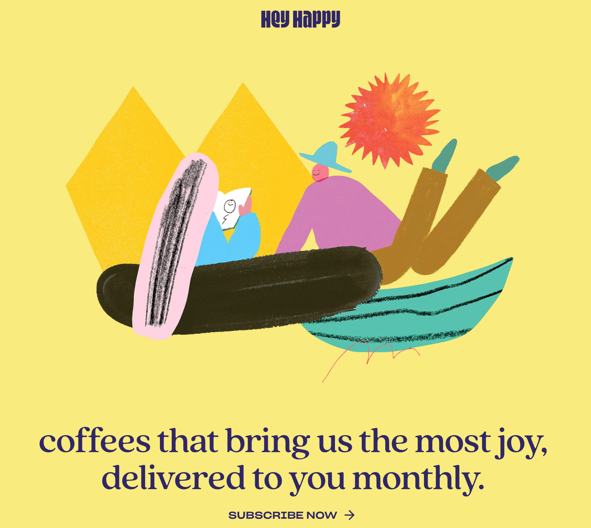 As part of a re-brand of Hey Happy - an independent coffee shop based in Victoria, British Columbia - I created a series of illustrations for use on menus and mugs alongside 2 bespoke pieces of wall art.