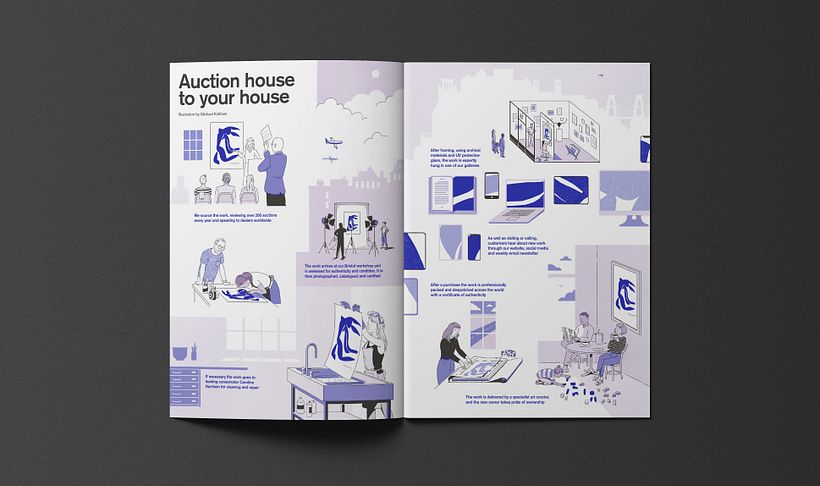 With their stock carefully chosen by the owner Chris Kendall, emphasis was put on choosing strong images and colours. The main colour palette for the identity is black, white and electric blue, with the support colour palette taking its pick from any given art work featured. This helps keep the material varied and appropriate to each valuable piece of art.
