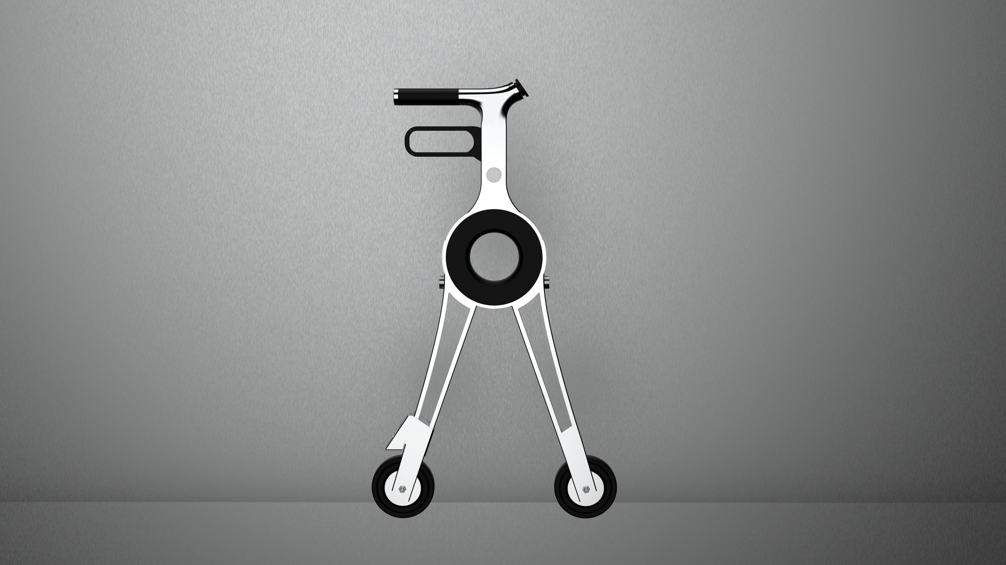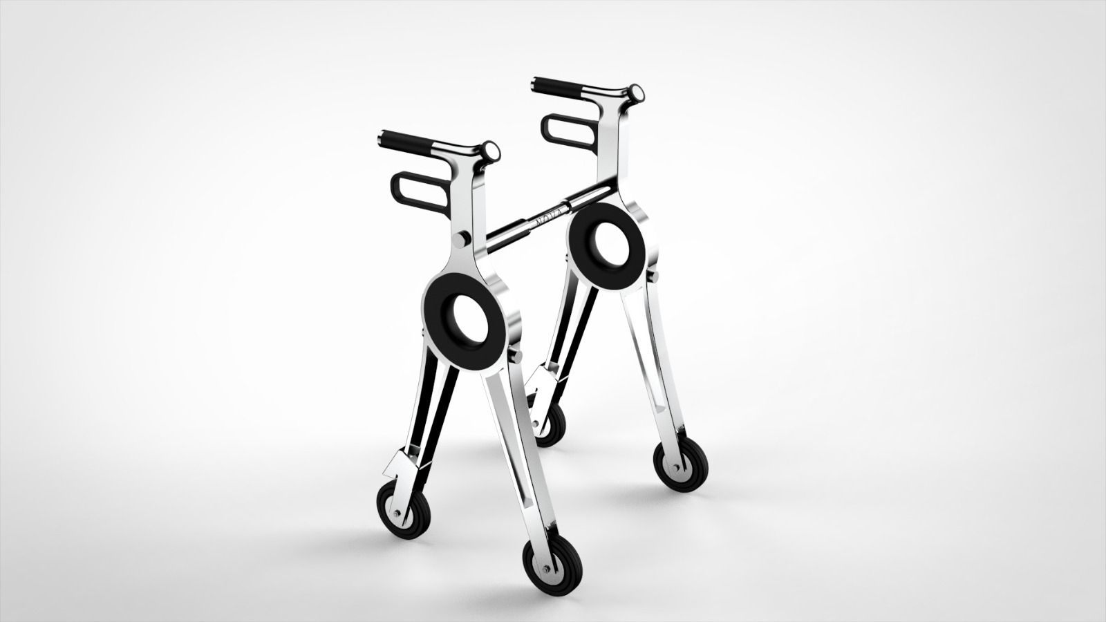 El andador se construye alrededor de dos perfiles principales conectados mediante un sistema de plegado inspirado en un compás, que permite una apertura suave y controlada.