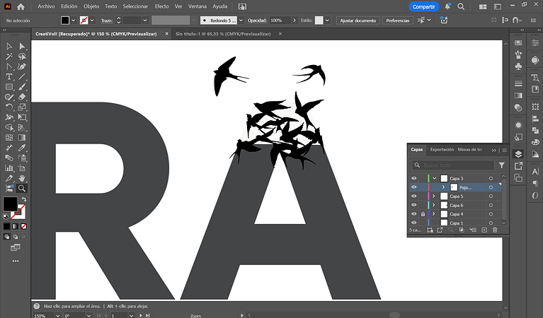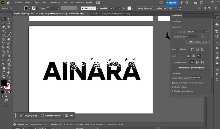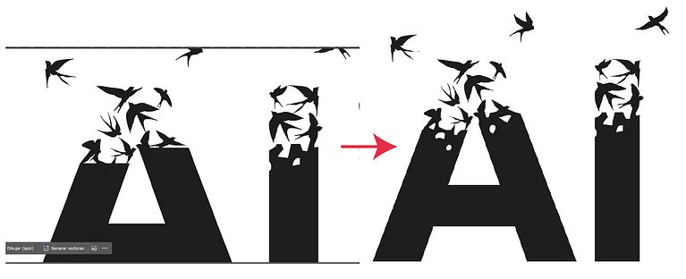 Para poder editar las letras, también seleccioné la opción "Expandir". Poco a poco fui eliminando las partes que quería que se transformaran en pájaros e incorporándolos gradualmente a la composición.