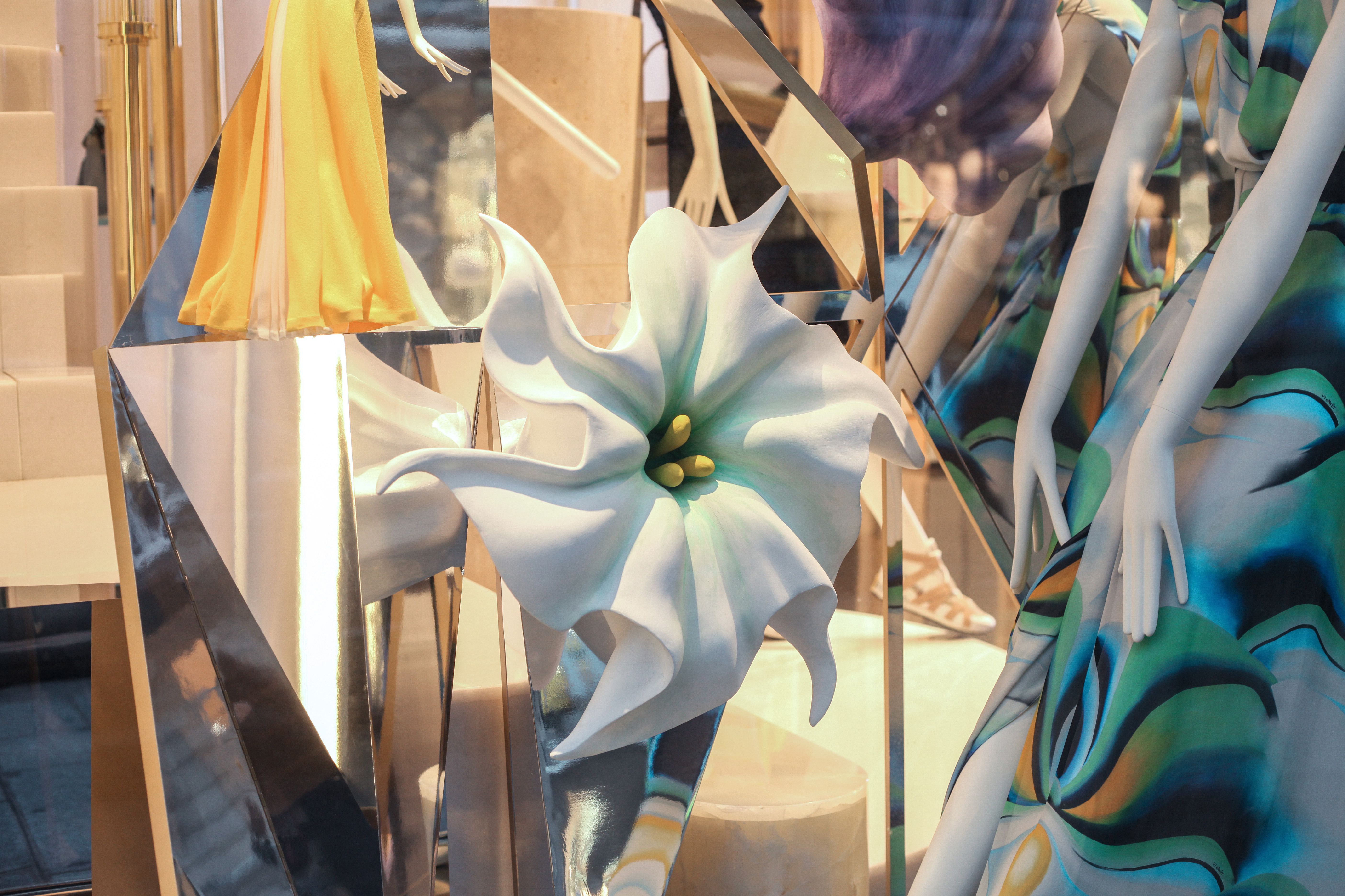 La nostra intenzione è stata di creare una vetrina ricca e festiva, e allo stesso tempo mantenere sia i temi classici di Vionnet, come la simmetria e geometria, sia il forte tema floreale della collezione cruise 2016.