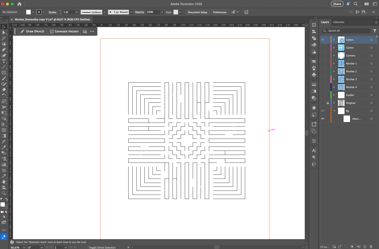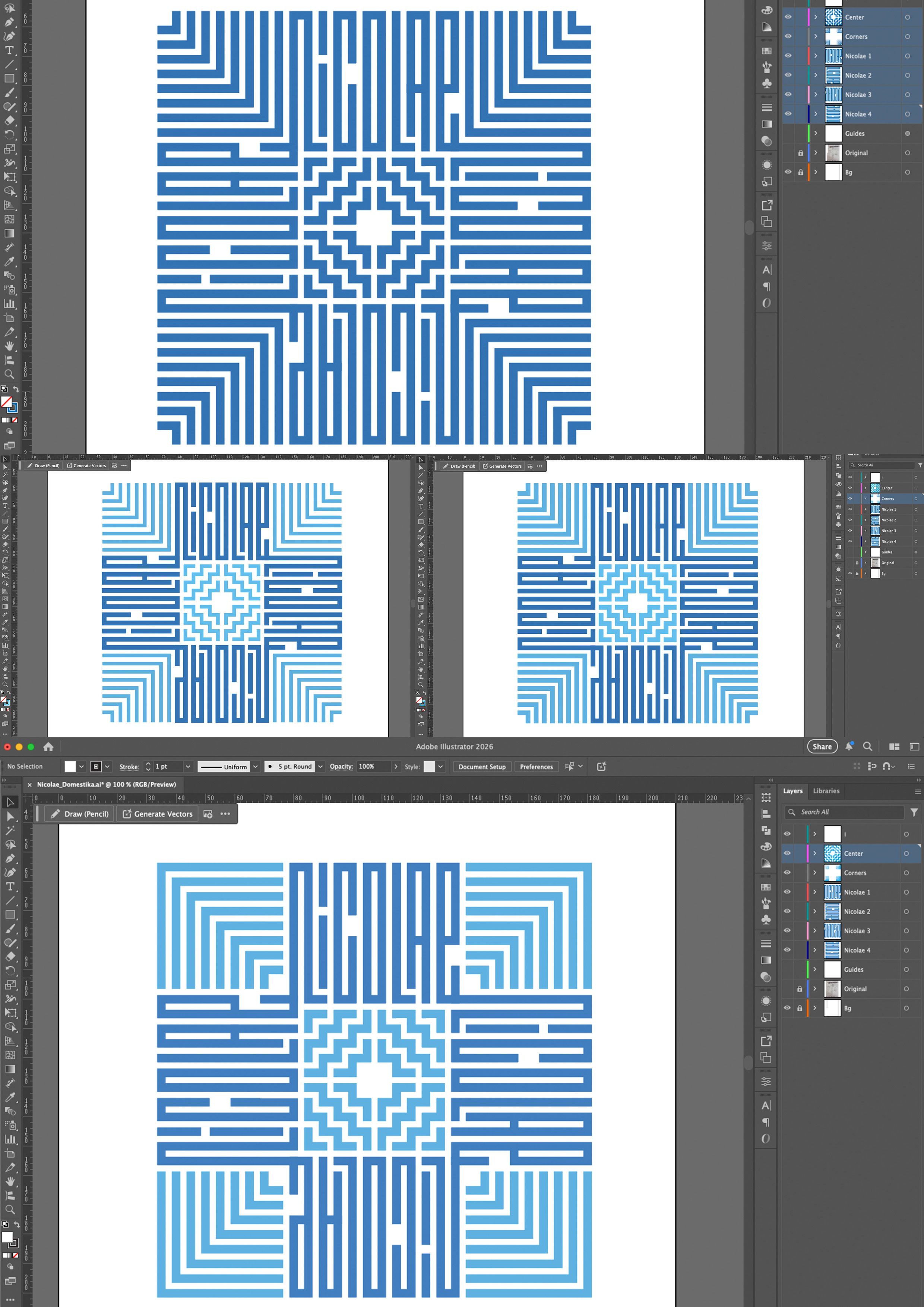 - Digital: Adobe Illustrator 2026 for precise vector drafting and grid construction.