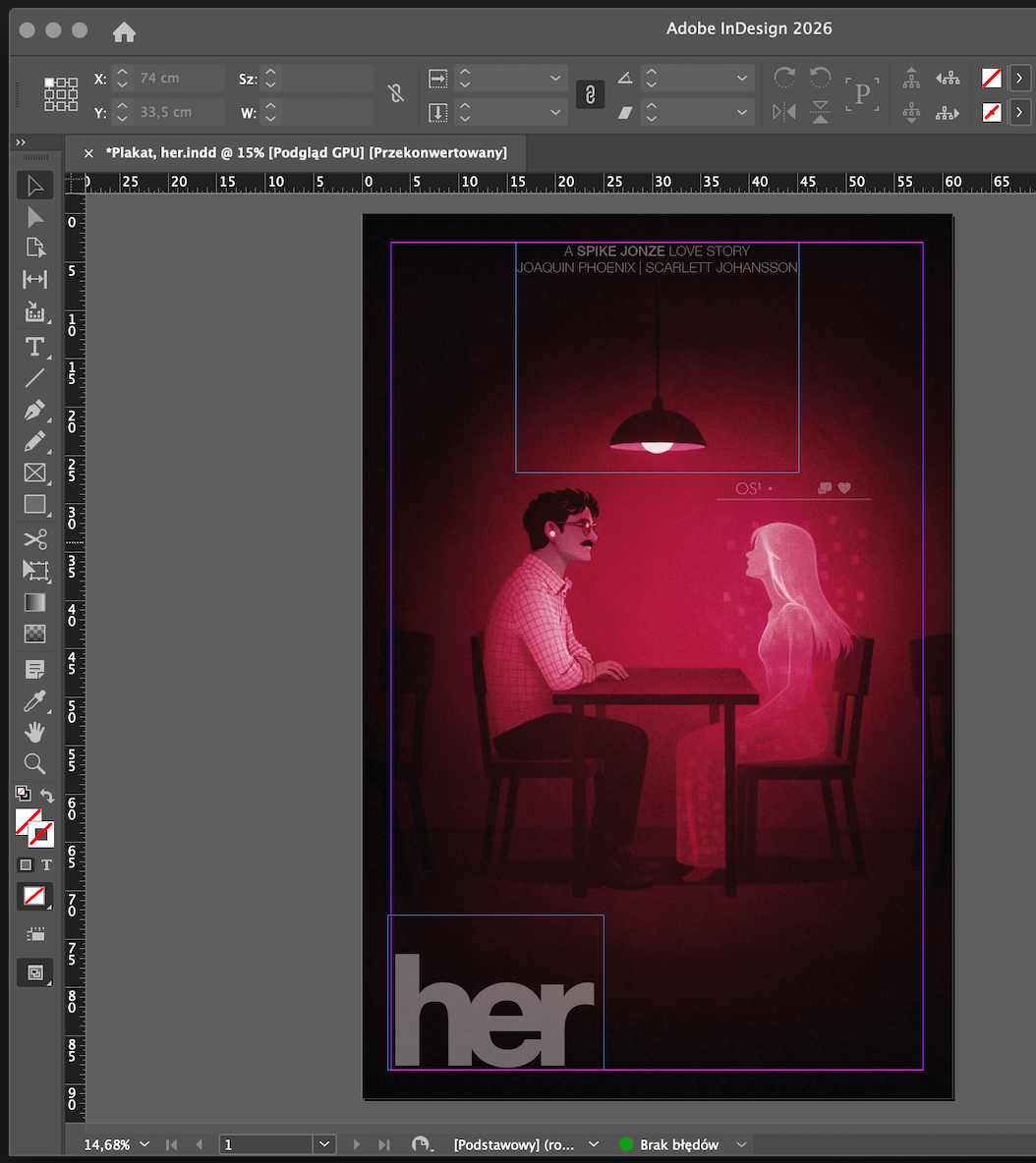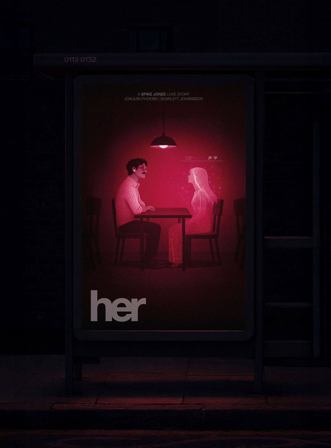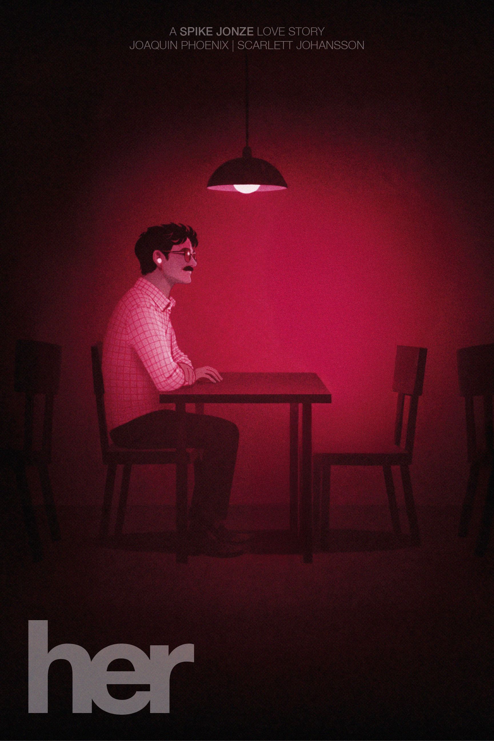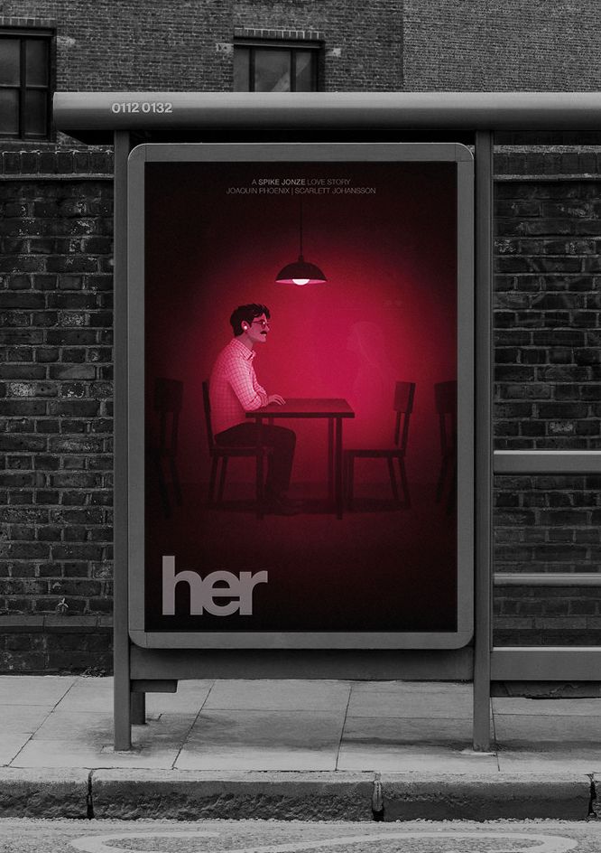 Her is a story about loneliness in a constantly connected world. My poster explores the inner, closed-off reality of a contemporary introverted single- a person who is physically alone, yet emotionally invested in a relationship with someone who does not exist. It is a quiet image about intimacy, absence, and human needs in the age of artificial intelligence.