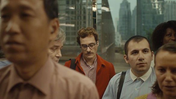 O principal motivo visual é o vazio — representado pela mesa vazia, pelo espaço vazio e pela atenção direcionada a uma presença inexistente. O olhar e a linguagem corporal de Theodore concentram-se inteiramente no holograma. Sem ele, estaria sentado completamente sozinho. Essa ausência é fundamental para a composição e o significado do pôster.