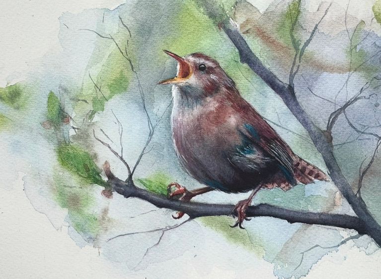 I created a watercolour piece of a Jenny wren for a new course. I wanted to incorporate a background