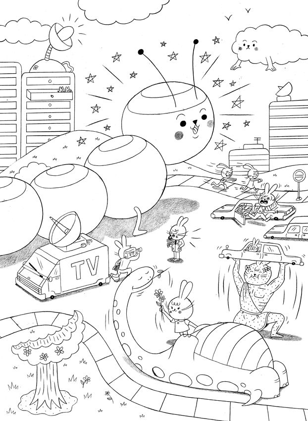 Este libro significó el desafío de extender mi trabajo desde una tira cómica de 4 viñetas a una aventura de 40 páginas.